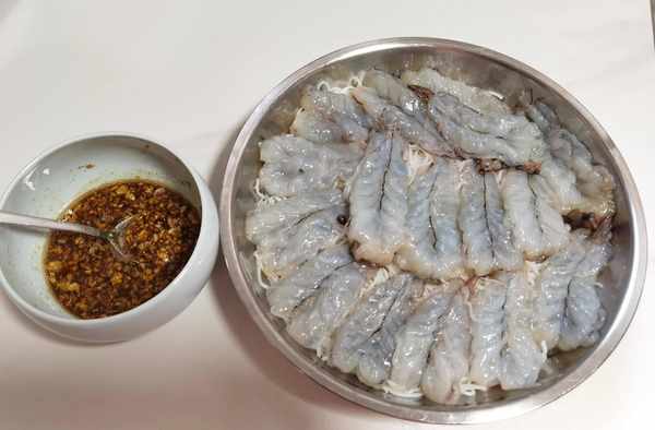 食材準備:海蝦一斤,粉絲一個,蒜蓉適量。