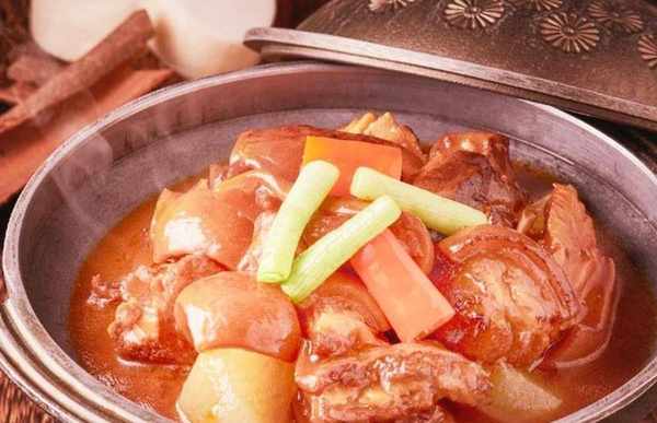 羊腩800克、胡蘿卜一根、大蔥、蒜子8個、幹辣椒2個、草果1個、薑一塊、冰糖、料酒、白酒、醋、鹽、沙爹醬、柱候醬