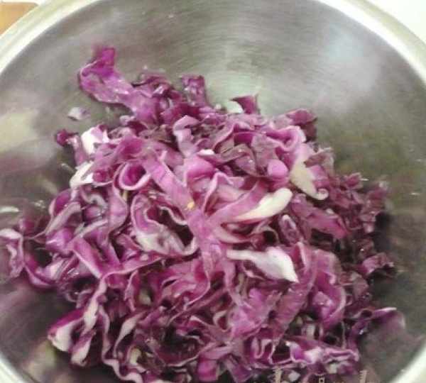 第4步、紫甘藍絲撒上鹽醃制一段時間,時間可以長點。
