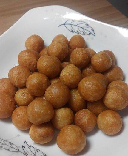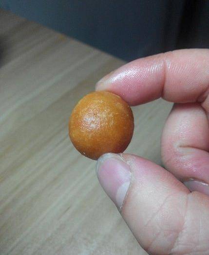 喜歡的親,試試吧~記住,外皮不要裹太厚哦。皮捏薄一點,合攏的時候,隻要能裹住花生,多餘的面團給它揪掉,搓圓,不露出花生米就行。