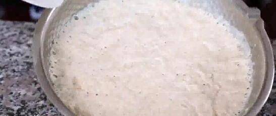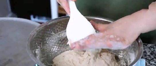 攪勻之後,我們在倒入500m的中低筋面粉,用一個勺子開始和面,蓋上蓋子,等1小時發酵,膨脹成2倍大,再次攪拌,發酵;