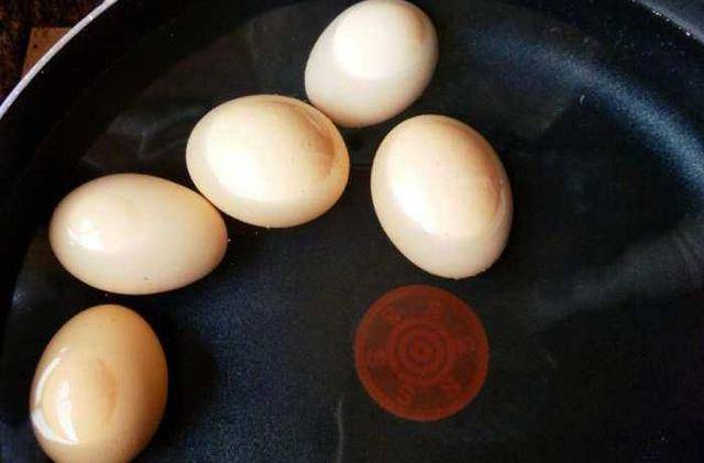 第一步:鍋中加入水,放入蛋,煮到雞蛋七八成熟。撈出雞蛋,用冷水浸泡,(冷水浸泡可以使雞蛋中的蛋白和殼分離開來,熱脹冷縮的原理),接著輕輕敲碎蛋殼,備用。