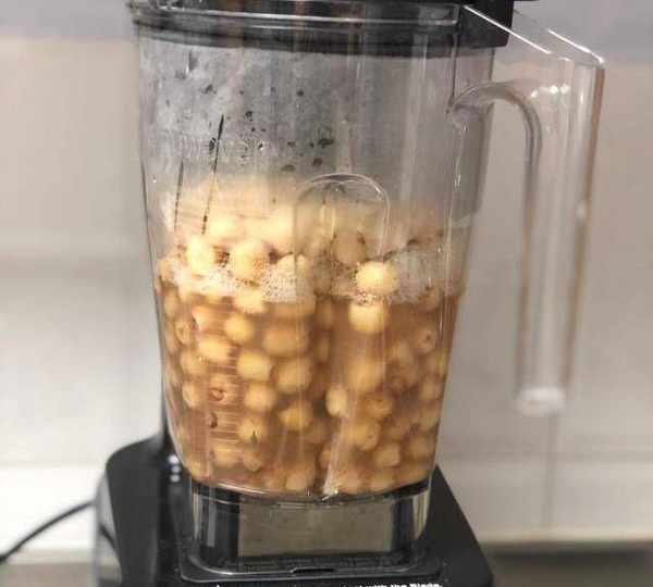 第2步、2.煮好的蓮子連同水一起倒入破壁機中,攪打成細膩的泥狀,如果傢裡的破壁機比較小就要分次攪打。