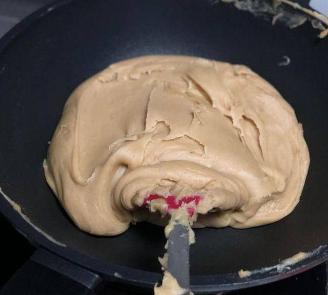 第4步、4.當餡料開始變得有點濃稠就開始加入玉米油,分3次加入,每一次都要充分融合以後再加下一次,食用油都可以,隻要不介意特殊的味道,比如花生油,菜籽油。