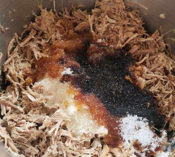 第6步、把所有的調料一次性倒入機內。