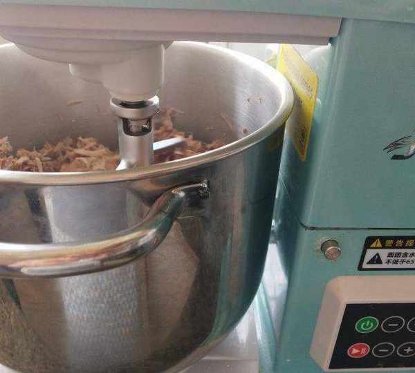 第4步、撈出放入廚師機內,低速攪打1分鐘。