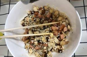 這次我用的是香菇還有火腿 把香菇和火腿切丁備用