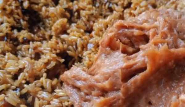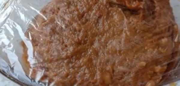 4、可以用筷子將它攪拌一下加快它放涼,等糯米放涼後就把肉餡倒入糯米中,同樣也要順著一個方向攪勻,然後將提前洗好的羊腸頂端打結,把糯米灌進去,灌的時候稍微轉動著灌制,不要一下灌得太滿,灌到八分滿就可以瞭,然後打結再分段綁上線。