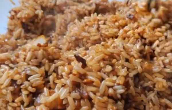 3、鍋中加入少量食用油,把切成碎丁的洋蔥倒進去,再把香菇碎也倒進去煸炒幾下,煸炒出香味之後,把糯米倒進鍋中。然後往鍋中調入一點老抽、適量的食用鹽,拌勻後將糯米盛出放涼。