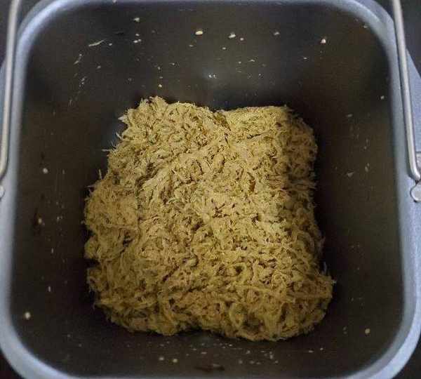 第13步、這是一小時後的肉松,我覺得不夠松,想要起絨效果,再一次和面程序20分鐘。