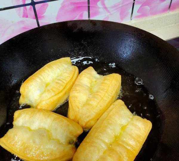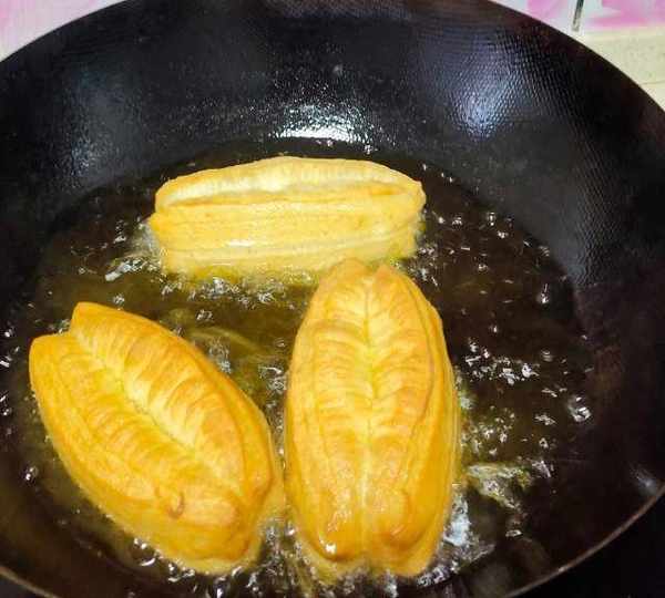 第5步、輕輕翻動油條使其受熱均勻,顏色一致金黃。