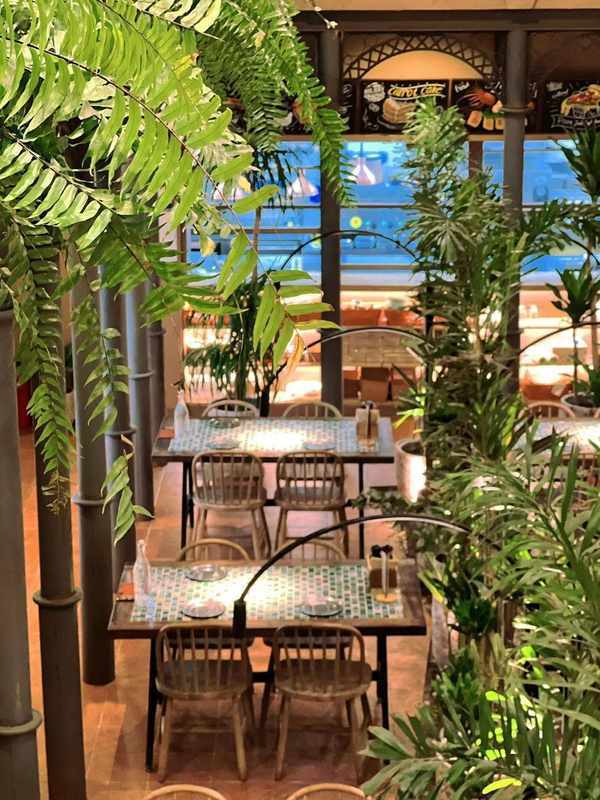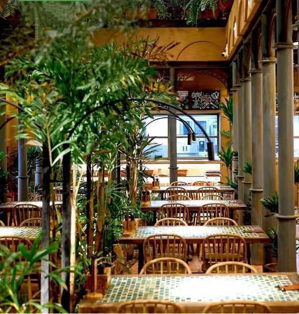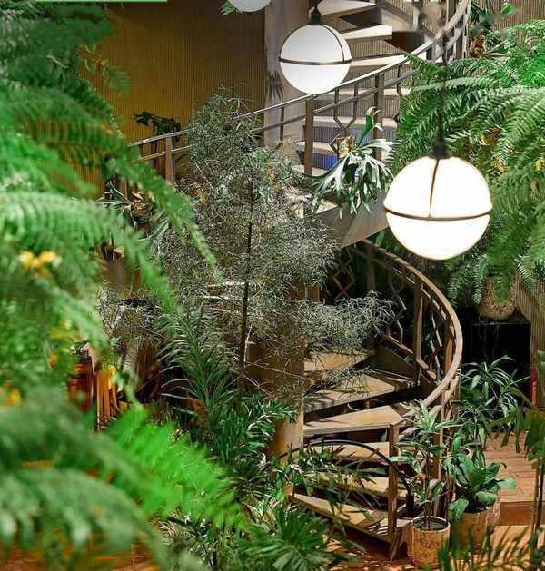 還沒進門就可以看到店內佈滿天然綠植,進去你就會發現,竟然連天花板都沒放過!