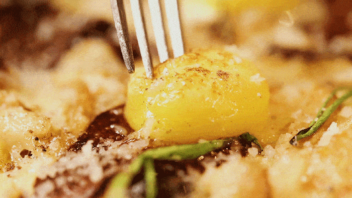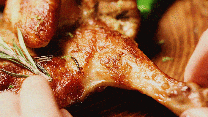 嫩滑的雞肉,油滋焦香的脆烤雞皮,高溫烘烤出的汁水從被撕開的肉縫中流出,每層肉質都能嘗到被醬汁醃制後的不同層次味道,吃完滿嘴留香~