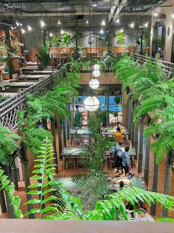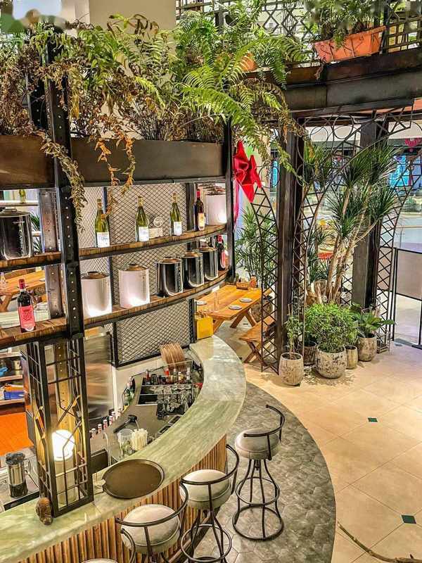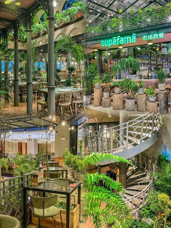 兩層復式,面積高達1200平方,以復古的歐式鐵藝+木質結構裝修室內環境, 營造出瞭一個兼具活力又還原天然的歐式秘密花園,雅致卻又不失自然活力,坐在其中用餐,身邊綠植環繞,清冽的空氣讓你自然而然就感到身心放松,心情愜意!