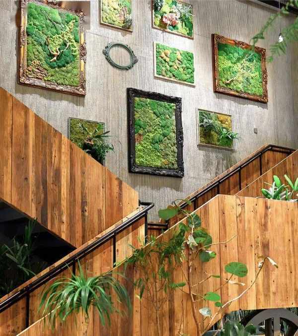 歐式雙向Y字樓梯,背靠一整面鮮活苔蘚相框墻,妥妥的出片打卡點,仿佛穿越到歐式宮廷中!