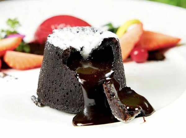 它有一個貼切的別名,叫做“心太軟”,在蛋糕切開的瞬間,內部的巧克力獎緩緩流出,如同火山中流出的巖漿一般。