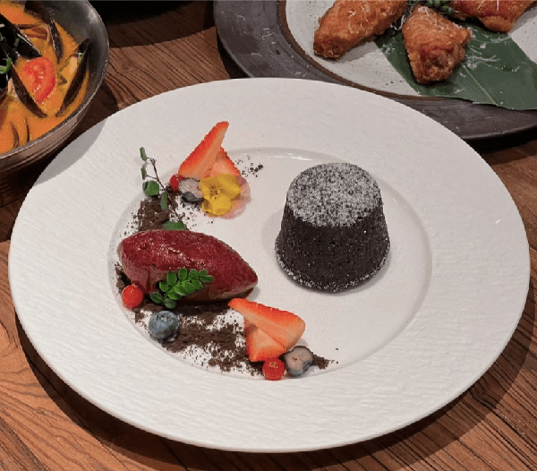 再來一個餐後甜點——現烤巧克力熔巖蛋糕,被吃貨們“翻牌”次數超多的甜品之一,外表簡直精致得不像話, 光是在顏值上就吸粉無數!