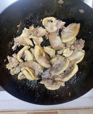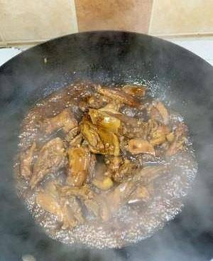 6.倒入鴨子翻炒,表皮裹上糖色。