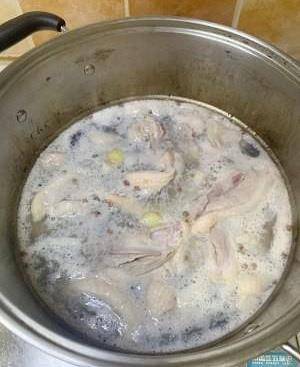 3.鴨子撈出,揀出薑片,洗凈放在一邊。