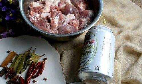 將鴨腿切塊洗凈。準備好香料和一聽啤酒。