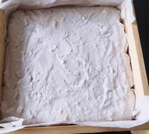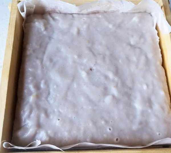 第6步、倒入鋪瞭油紙的蒸屜,抹平表面。