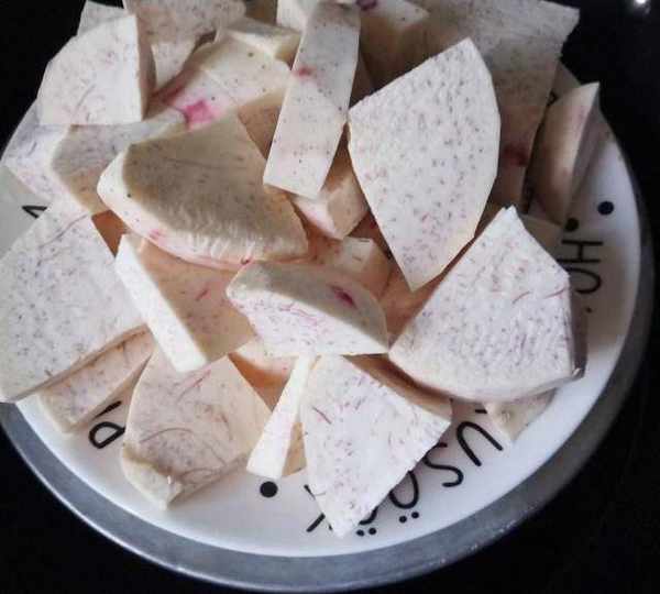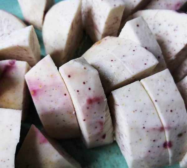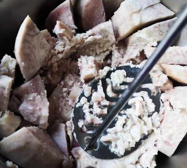 原料:檳榔芋泥、粘米粉、水、白糖、鹽、生薑末、胡椒粉。