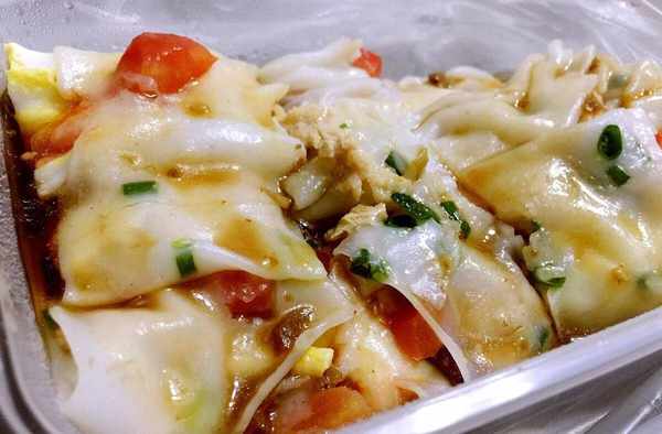 腸粉是廣東隨處可見的經典美食,由陳年大米磨成的米漿制成外皮,內有各種餡料,口味清淡又管飽。普通的廣東腸粉是在蒸盤上均勻倒入米漿後蒸制粉皮完全凝固後,再放入餡料二次蒸制,而潮汕腸粉與眾不同,它是在粉皮半凝固的狀態下填入餡料再繼續蒸制,這樣米皮和餡料就更加鮮嫩芬芳。並且廣東腸粉的醬油為甜口鮮醬油,潮汕腸粉的醬油則是味道更重一些的咸醬油,腸粉上需要撒一些菜粒,以顯得更加色香味俱全。