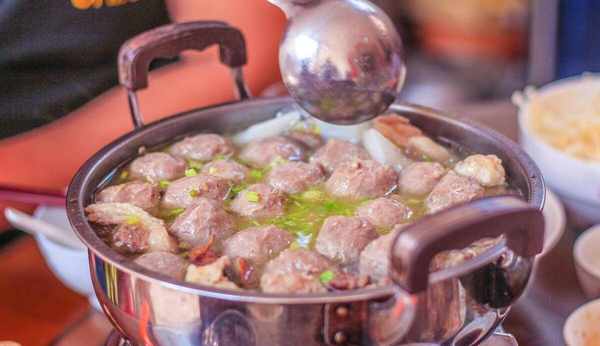 潮汕火鍋全國聞名,而大傢在潮汕火鍋店最愛的火鍋菜一定就是潮汕特色牛肉丸瞭。潮汕牛肉丸分牛肉丸和牛筋丸,是用木棒直接捶打整塊牛肉或牛筋、直至筋膜斷裂成為肉泥,再調入適量的調料擠成的肉丸。這種肉丸質地彈牙勁道異常,咬一口就有豐富的汁液,也不像普通肉丸常用淀粉充數,原材料隻有實打實的牛肉,是為大傢熟知和喜愛的潮汕小吃。
