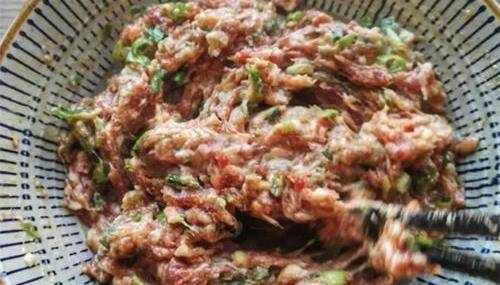 將300克豬肉放到案板上,用刀剁成肉末,放到碗中。再往裡面加入生抽、蠔油、鹽、花椒粉和雞精,用筷子攪拌均勻。再放入一把蔥花和1個雞蛋,用筷子順著一個方向,攪拌均勻,備用。