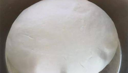 準備一個大盆子,將300克的面粉和3克鹽放進去。再往裡面倒溫水,一邊往裡面倒一邊攪拌成絮狀。用手揉成光滑的面團,蓋上一層保鮮膜,放到一旁醒發一會兒。在醒發面團的過程中,開始準備肉餡。