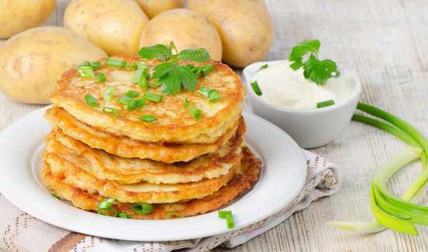 做法:在一個大碗裡,把土豆絲、雞蛋、洋蔥、面粉、鹽和胡椒粉混合在一起。在一個大的鍋裡,把油加熱,把土豆絲舀進鍋裡,然後稍微壓平,兩面煎4分鐘左右直到變黃。趁熱吃。