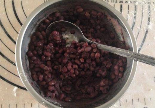 第二步,等到提示音響後,將高壓鍋的鍋蓋打開,把煮好的豆子取出,等到放涼後,直接倒入保鮮袋裡面,用搟面杖將其壓碎,這樣就可以將紅豆打成豆泥狀。