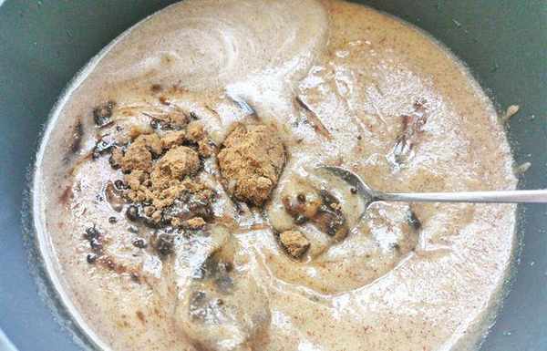 2、紅棗加入少量清水、麥芽糖、甘汁園阿膠紅糖攪打成比較細膩的紅棗泥,
