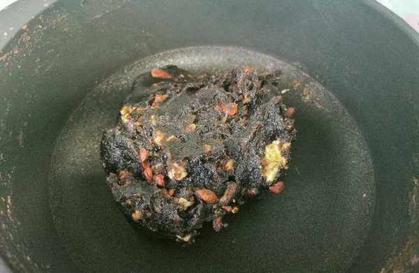 4、轉中小火不停地翻炒,翻炒至棗泥可以抱團的程度。