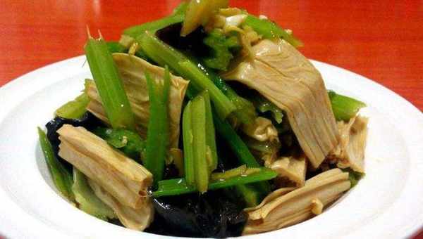 準備一些把芹菜摘洗幹凈瞭,切成長條,再切成小段,放盤裡備用,提前泡好的木耳,放著旁邊備用,現在時間已經差不多瞭,我泡的又大又軟,這樣的腐竹吃起來也比較有嚼勁,倒掉水分多清洗幾遍,來點食用油,翻炒一下,攪拌均勻,這樣就可以出鍋。一道非常好吃的傢常菜就這樣做好瞭。