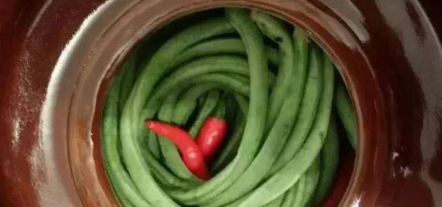 豇豆準備好瞭以後,那麼我們需要再準備一個泡菜壇子,壇子是需要清洗幹凈以後,把裡邊的水分控幹鍋裡邊燒上一鍋開水,然後把開水放涼瞭以後再把涼水倒進壇子裡,邊加入鹽花椒,再加入一些薑和辣椒。最後把我們的豇豆放到壇子裡邊,是需要密封好的,千萬不要漏氣瞭。