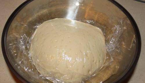 步驟1:在酵母和面粉中加入適量的溫水和面條。一次不要添加過多的水,否則會使面條變軟。逐漸添加它,直到它處於正確的狀態。混合後,揉成光滑的面團,蓋上保鮮膜,然後在溫暖的地方烘烤。
