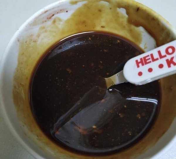 步驟3:使用蜂蜜,番茄醬,醬油和其他香料制成良好的燒烤醬。然後將豬肉烤醬和五花肉一起攪拌並醃制。