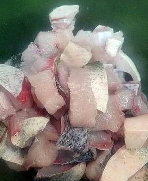 用料:魚塊1450克、薑100克、鹽12克、胡椒粉1小匙、面粉5湯匙、食用油適量