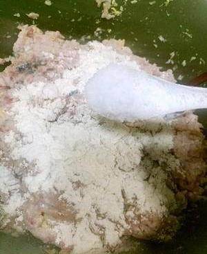 把絞好的薑沬倒入肉糜中,在加入1小匙胡椒粉攪拌均勻。