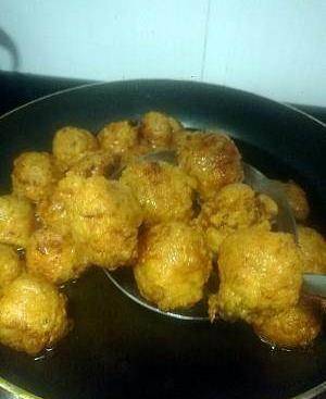 煎好的魚丸放在廚房紙上,吸掉剩餘油脂。