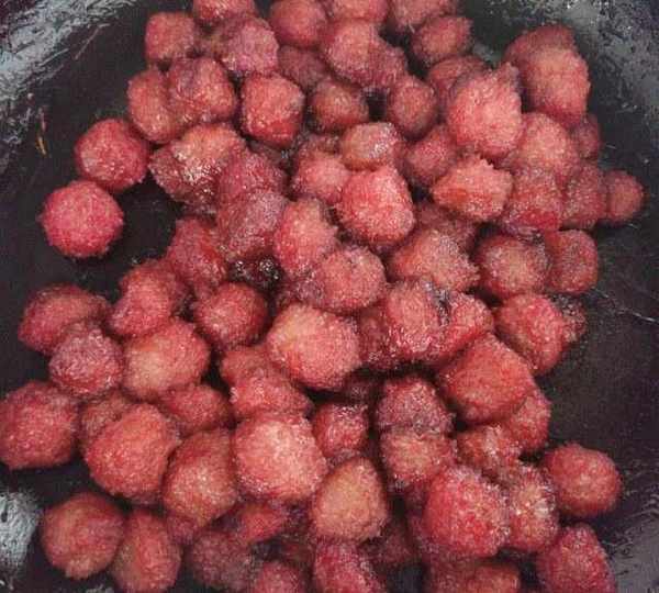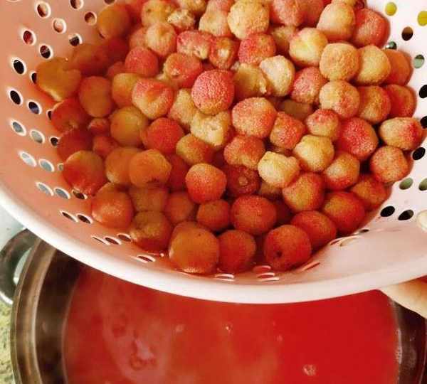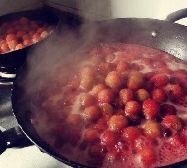 第6步、小火煮到後面發現楊梅水幹瞭,楊梅也很小瞭這個時候關火準備出鍋。