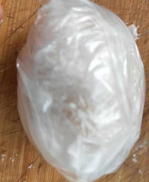 然後再用保鮮膜把雞蛋包裹好,包嚴紮緊,