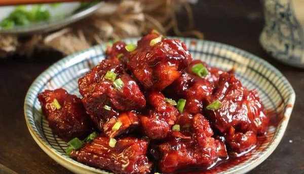 食材:排骨、腐乳、腐乳汁、料酒、砂糖、八角、桂皮、花椒、蒜、薑