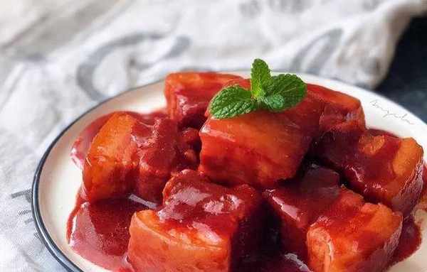 食材:五花肉、腐乳、蔥、薑、蒜、老抽、白砂糖。