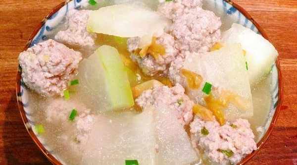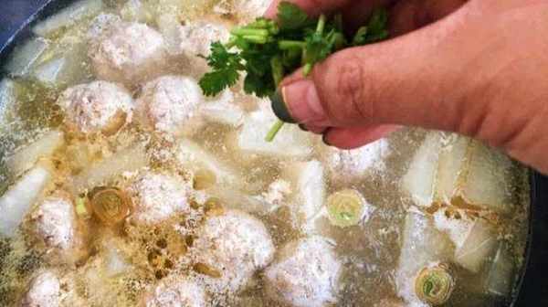 ③等待肉丸子浮起來,可能有少許浮沫可以撇去,撒入少許細鹽,還可以整點香油,就可以起鍋瞭。不過你得看看冬瓜熟瞭沒;