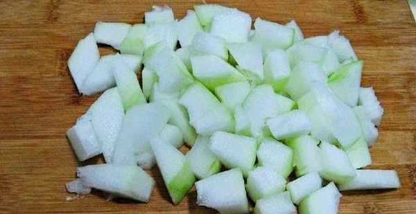 ③冬瓜切成小塊或片狀,盡量薄點易熟;