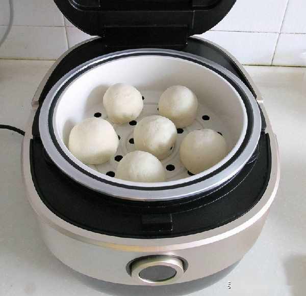 10,把篦子抹油,把豆沙包放入。把鐵釜裏放入適量的水。