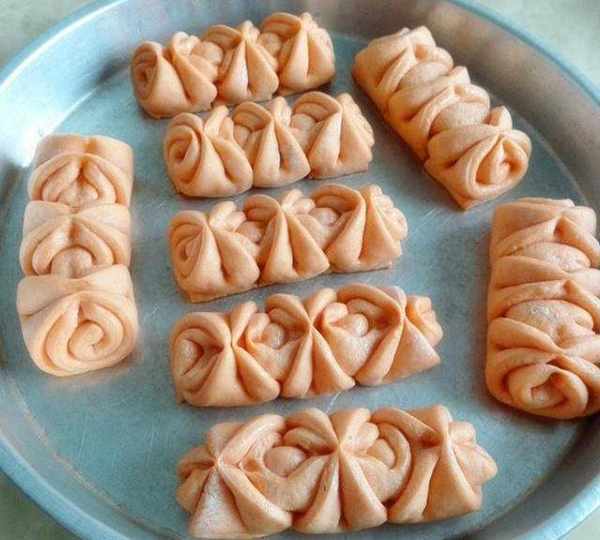 第11步、整理花形,稍將底部往裡收,放入蒸盤(或蒸屜)醒發至1.5倍大。