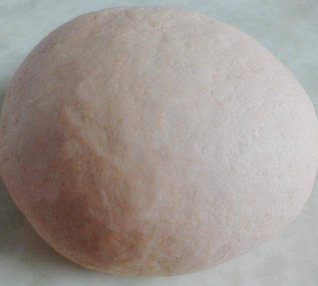 第2步、胡蘿卜泥與面粉、酵母混合,揉成光滑的面團。